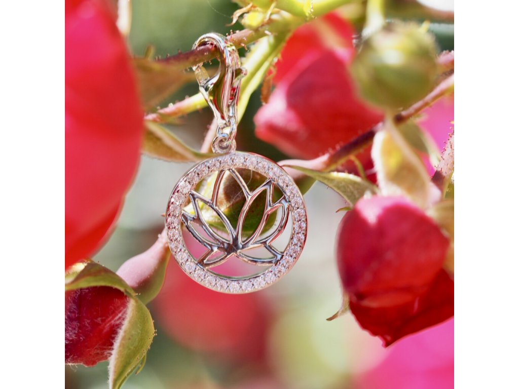 Stříbrný přívěsek na náramek lotosový květ se zirkony